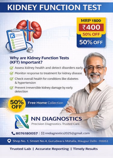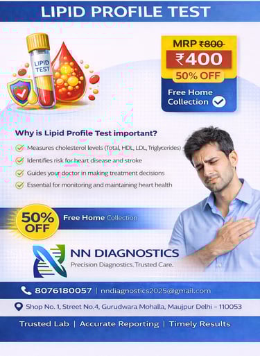 NN CARE 3.0, NN CARE 1.2, NN CARE 1.3, COMPLEHENSIVE FULL BODY PROFILE, GYM PACKAGE COMPLETE BLOOD COUNT, AUTOMATED ESR, LIVER FUCTION TEST, KIDNEY FUNCTION TEST, FULL BODY PROFILE, THYROID FUNCTION TEST, TSH (ULTRA SENSTIVE), T3, T4, PCOD PROFILE, ANTE NATAL SCREENING, AMH, HIV, ANTI HCV, HBSAG, SERUM ELECTROLYTE, IPTH, WIDAL PROFILE, DEGUE NS1, DENGUE IGG & IGM, TYPHI DOT IGG& IGM, FEVER PROFILE, FEVER SCREENING